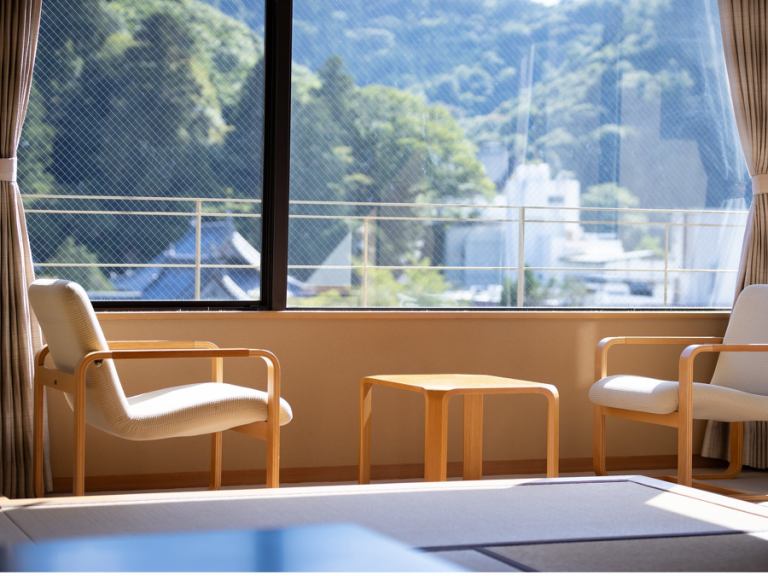 The view from your room.You can see the spa town and the mountains of Rokko.
