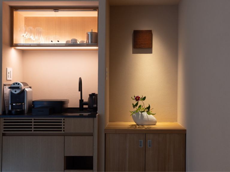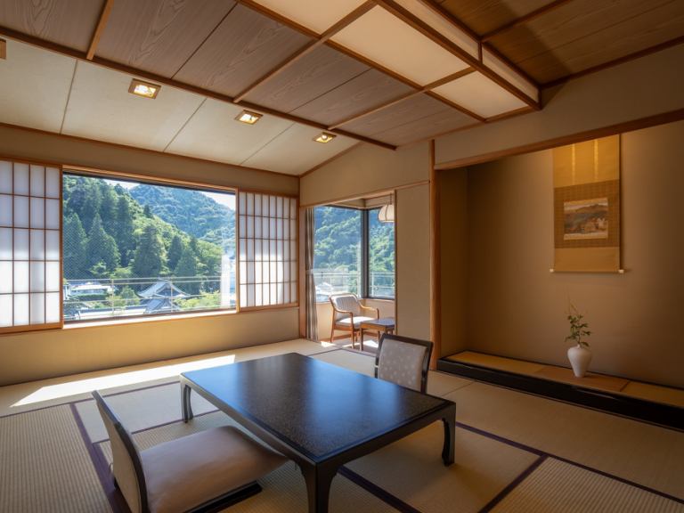 A quiet flower lodge on the hill of Arima Onsen.There are about 20 stone steps from parking the car to the lobby.